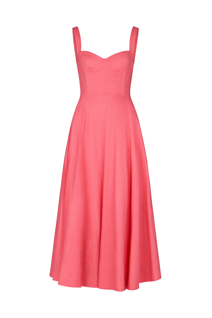 Drop waist midi dress with self covered belt
