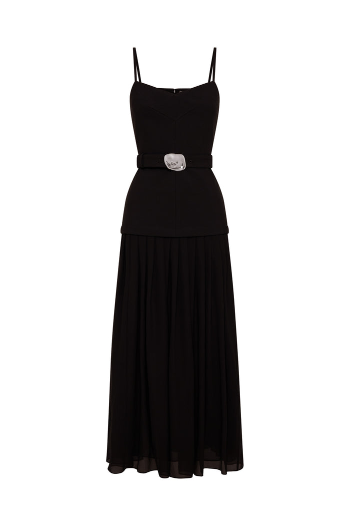 Drop-waisted strapless dress with a light-weight pleated skirt