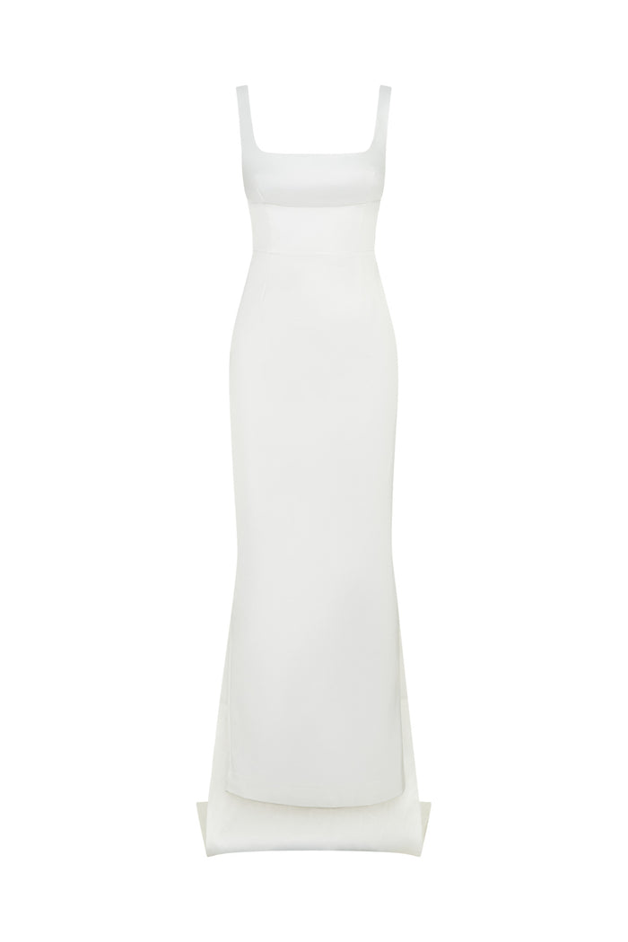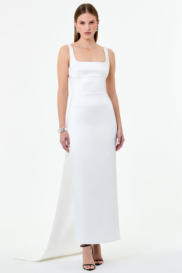 Square-neck, timeless column gown with train