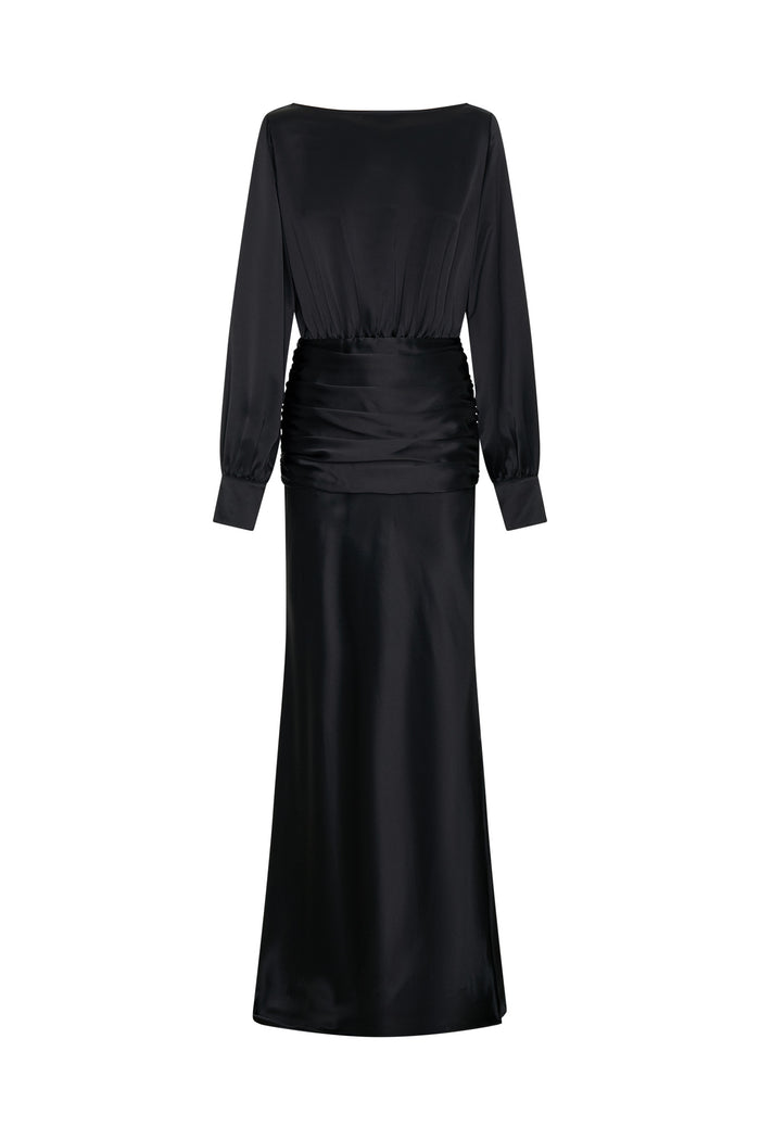 Long-sleeve gown in a luxurious satin fabric