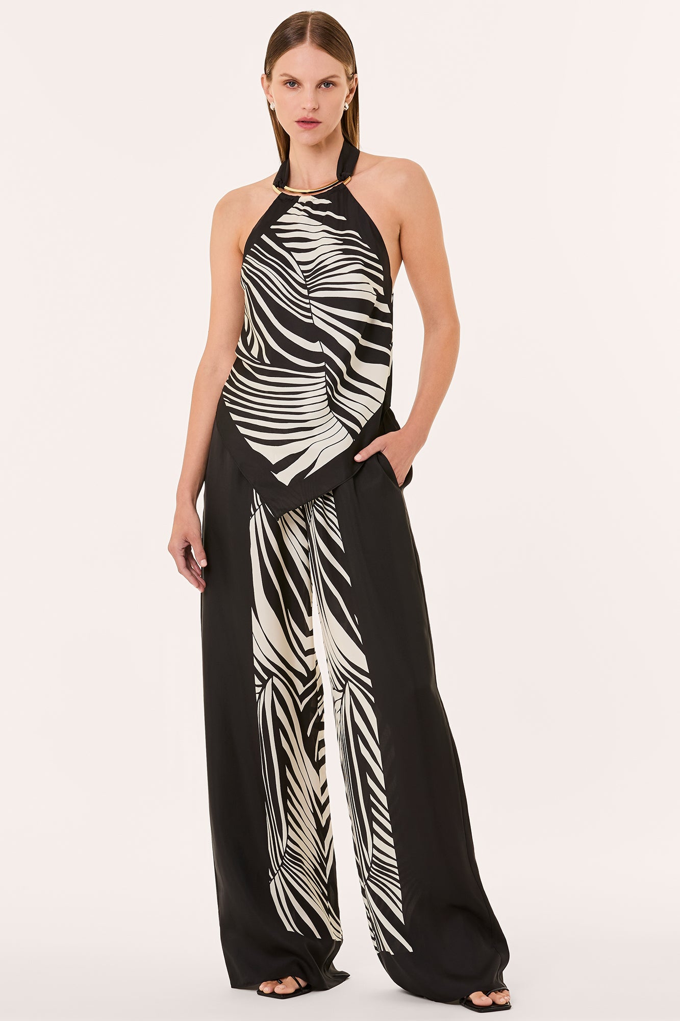 PANTS SANDRA PANT - RHEA PALM BLACK SCARF