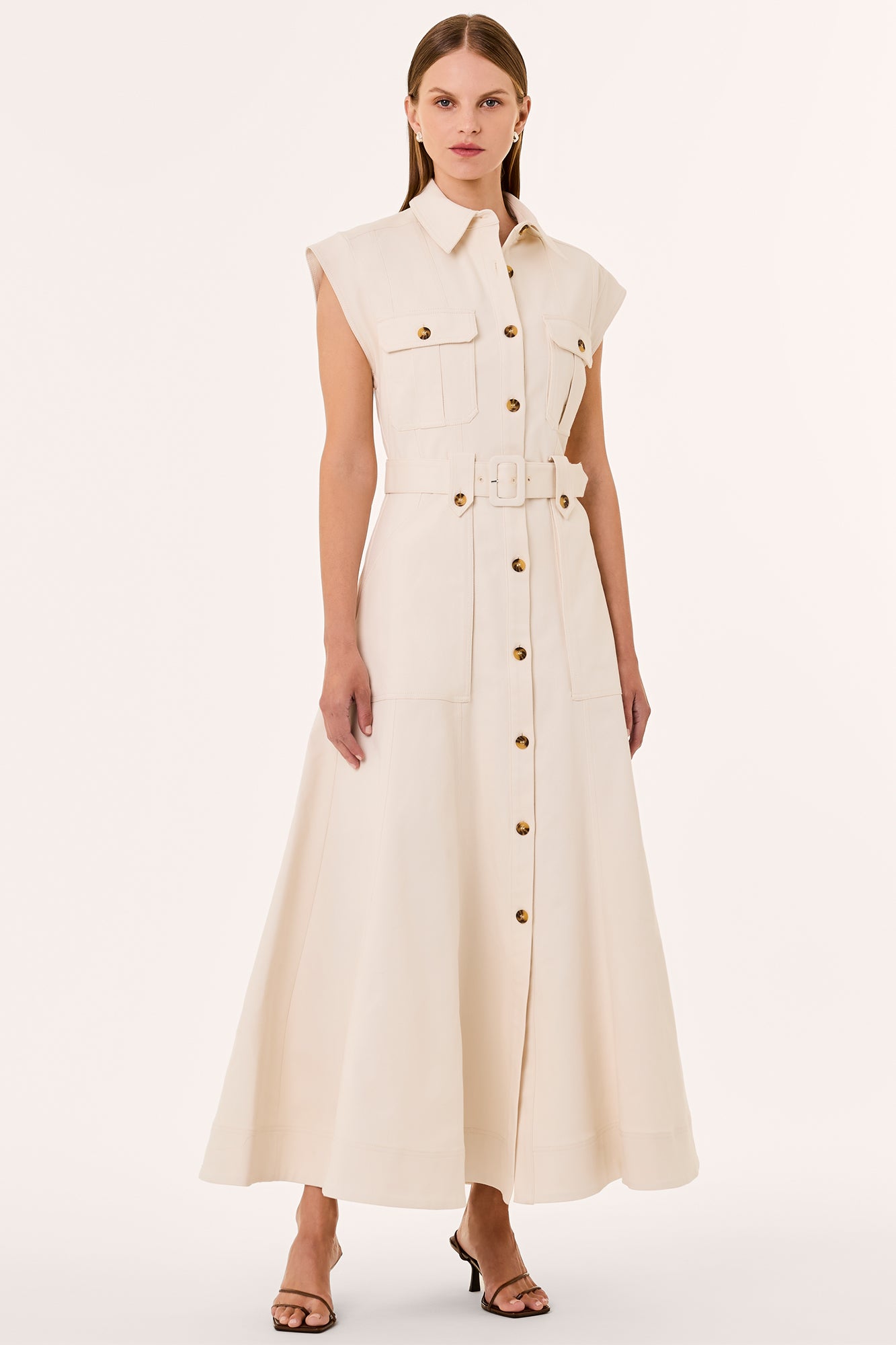 On a US size 4, this style measures 55" from the high shoulder to the hemline