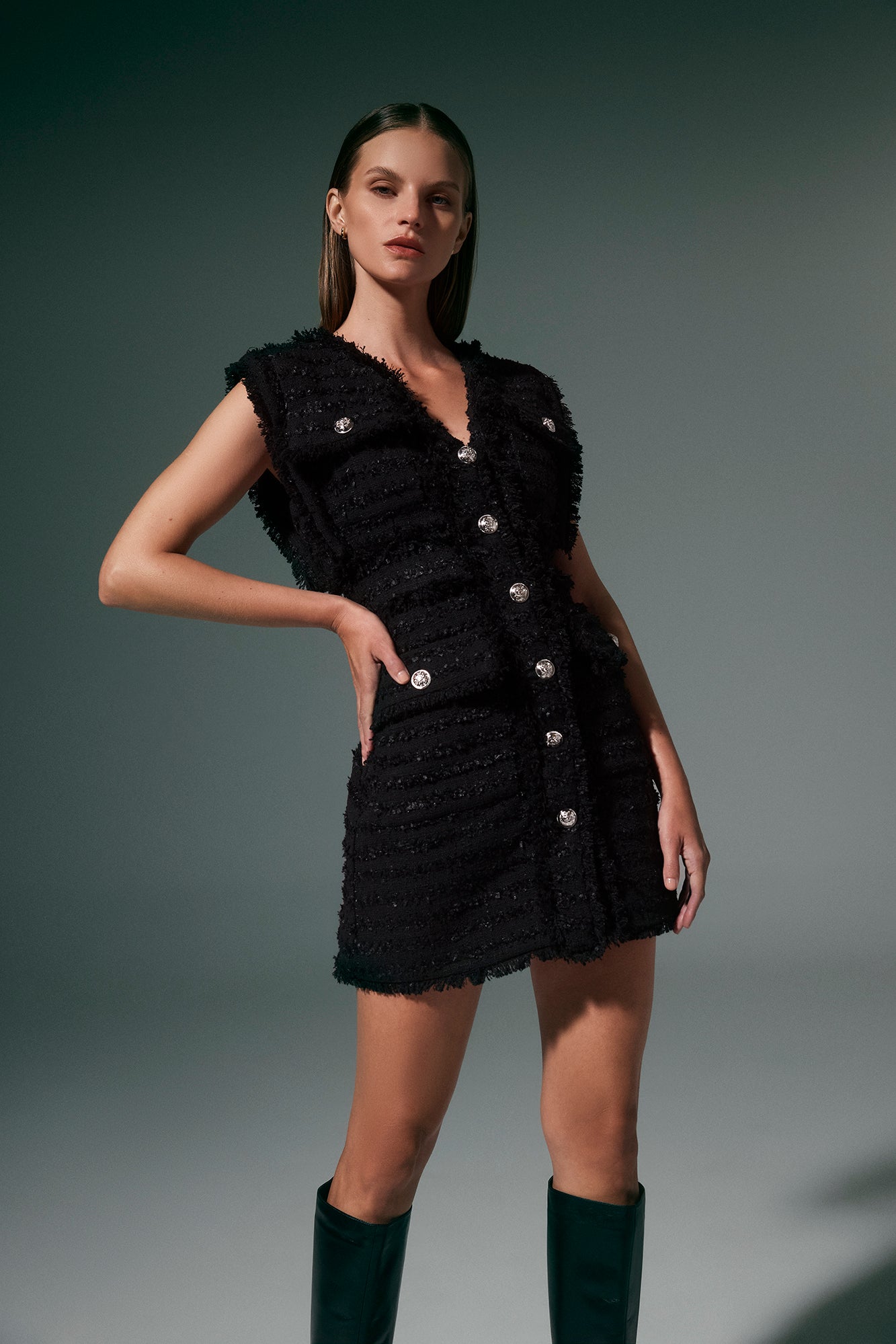 Sylvia measures approximately 33" from the high shoulder to the hemline