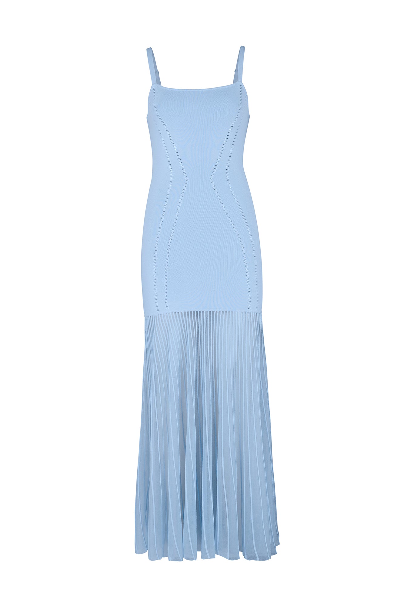 A form-fitting, stretch knit bodice with adjustable straps
