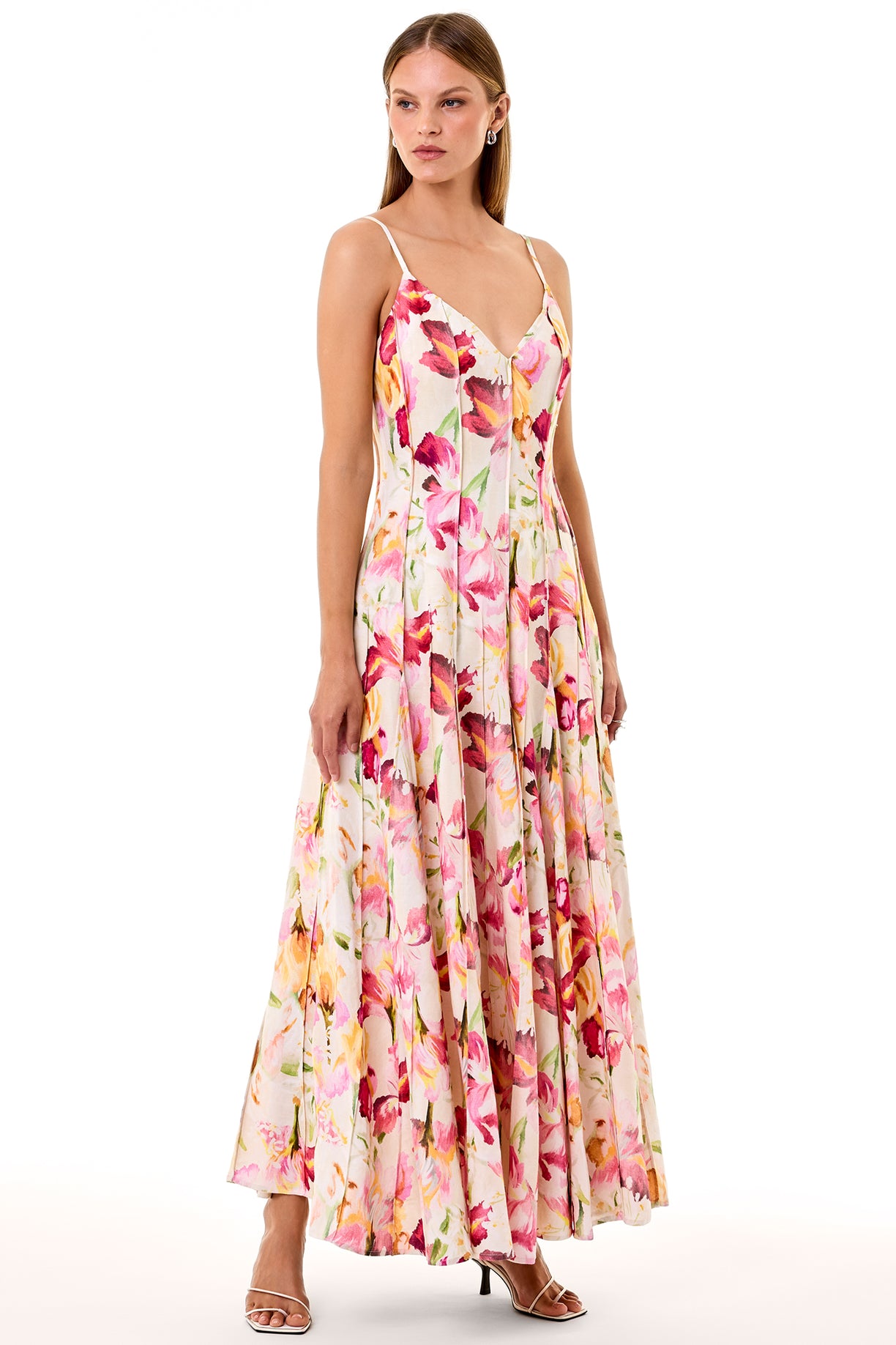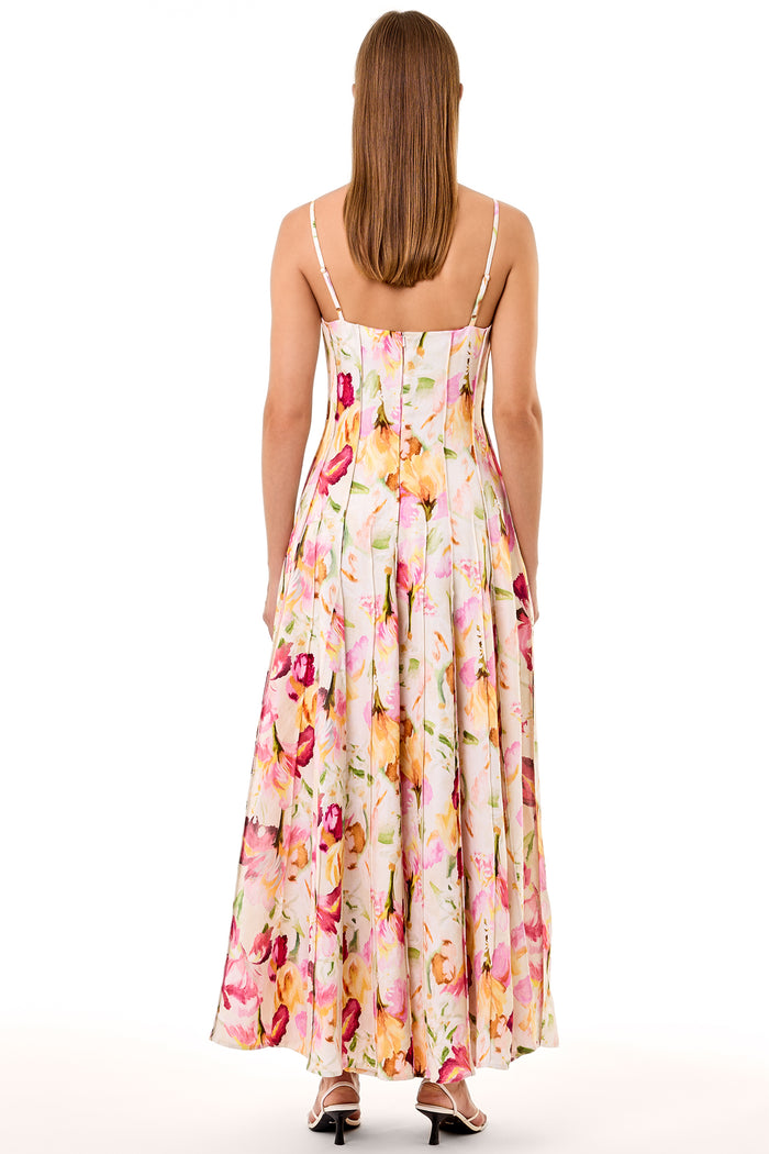 Panelled midi dress with adjustable spaghetti straps