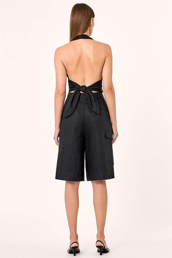 Overlapped front waist bermuda short.Height - 5' 8"