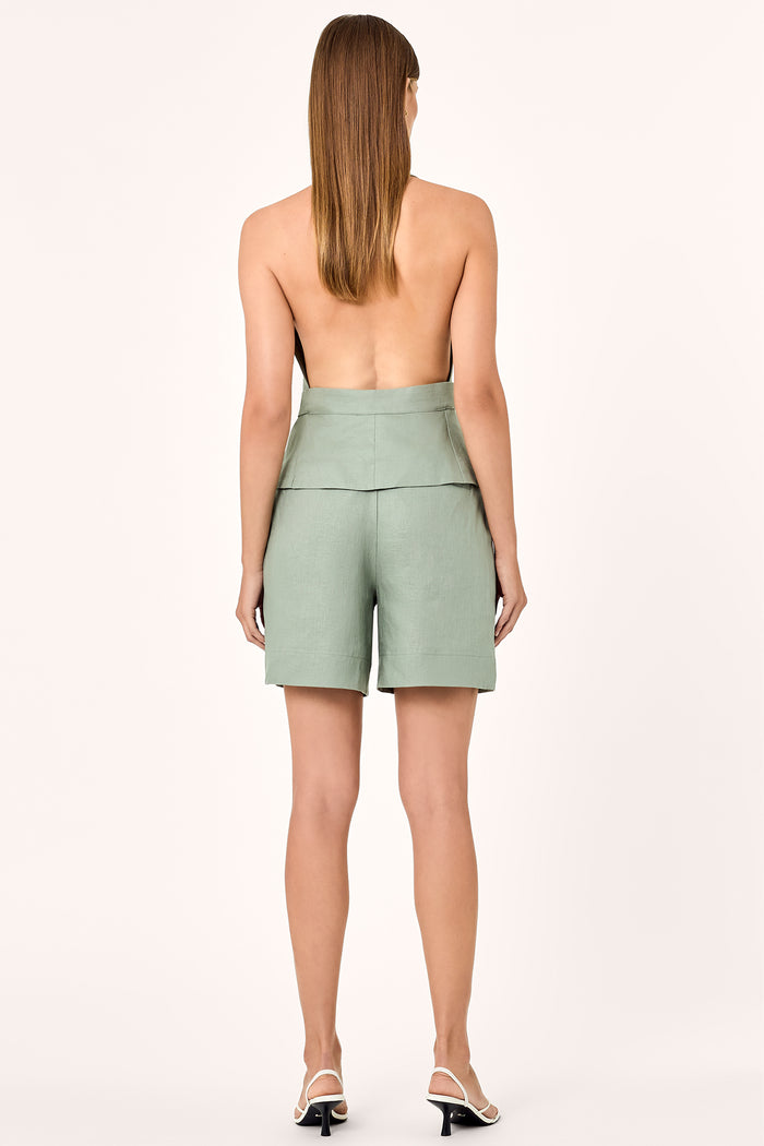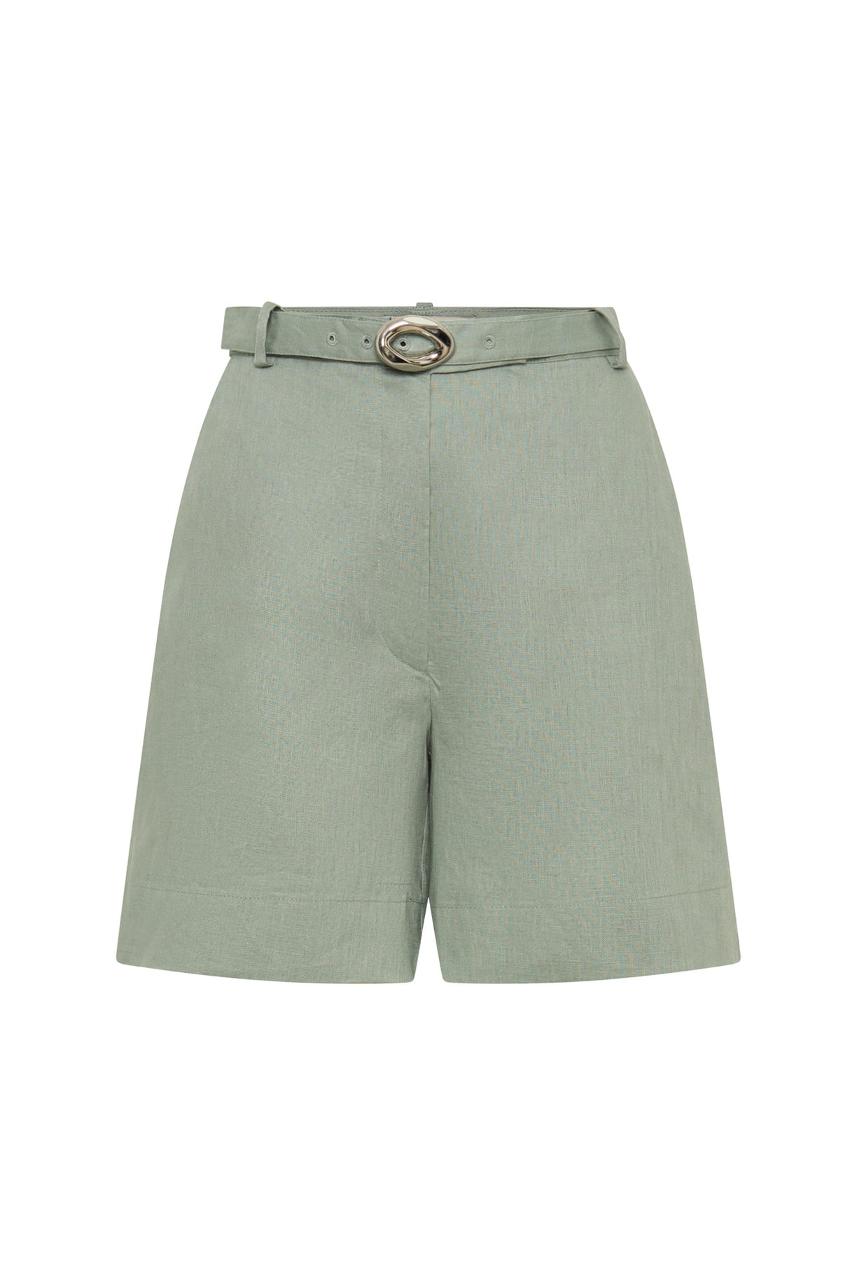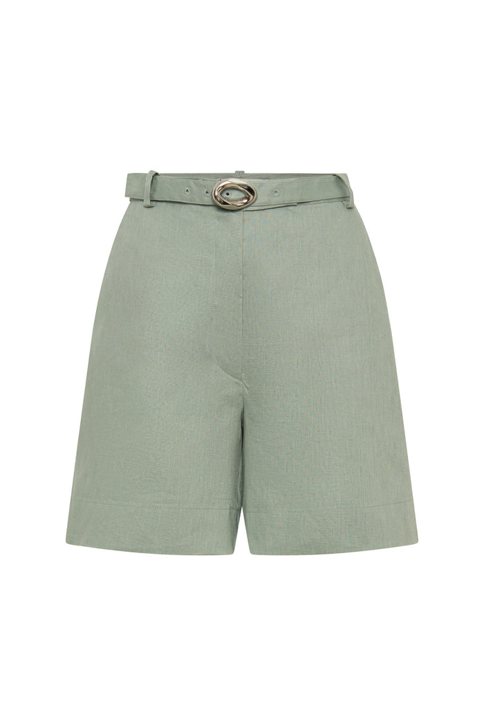 Bermuda short, self belt with metal chain buckle.Dry clean only.