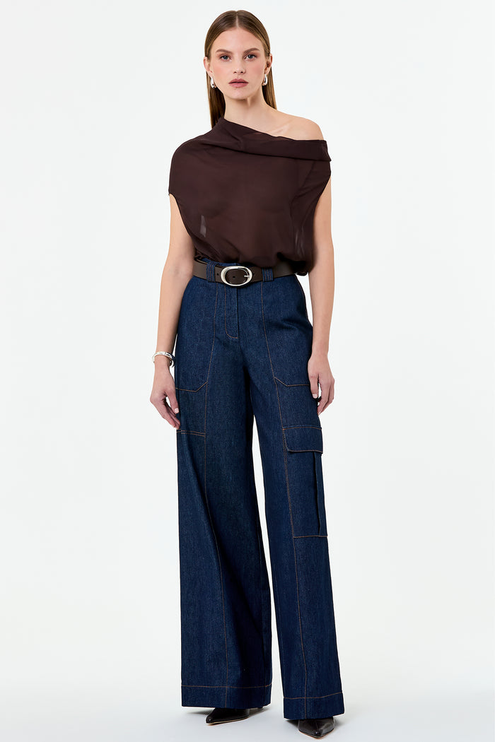 Asymmetrical neckline that can be worn off-shoulder on either side