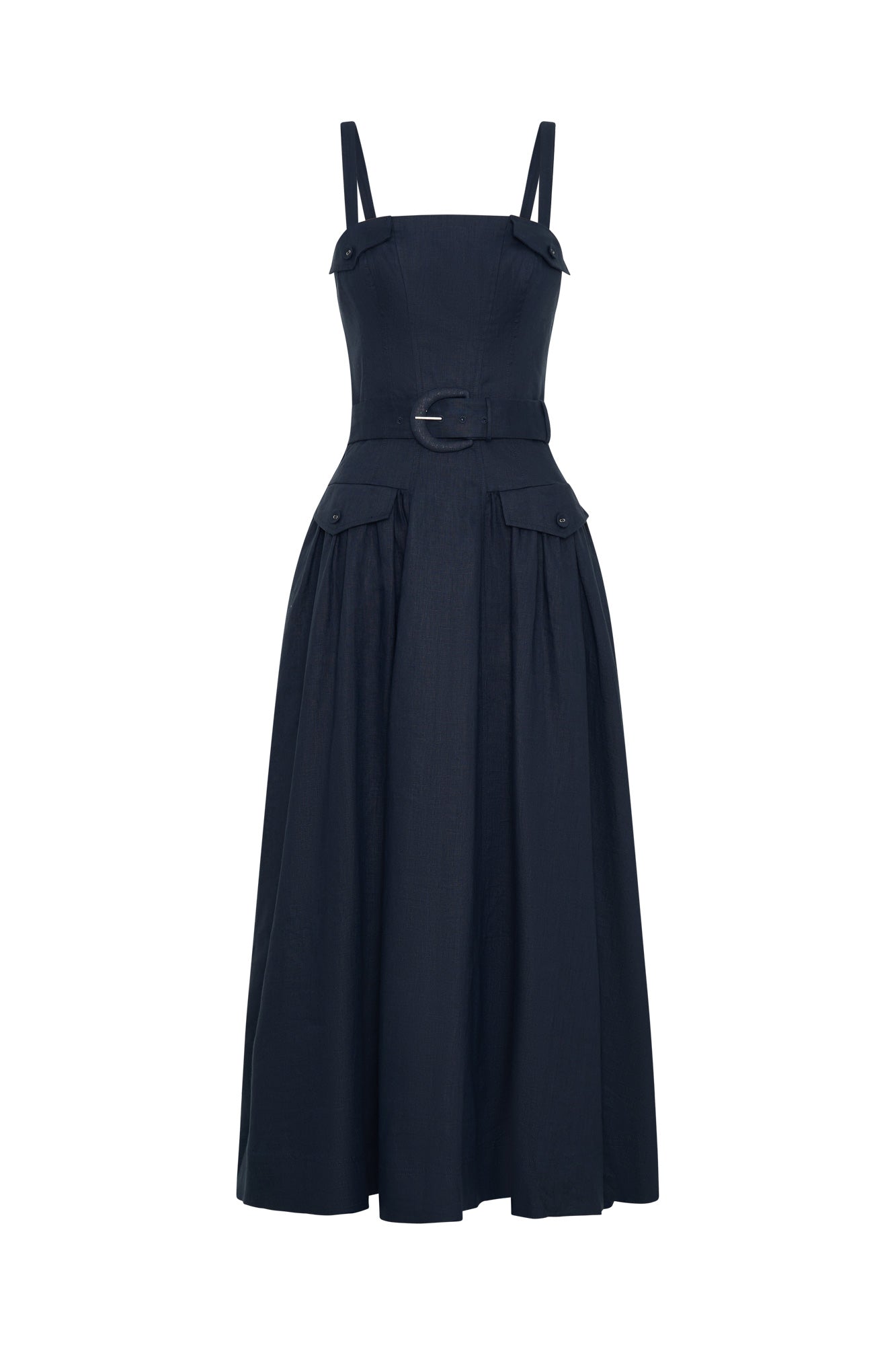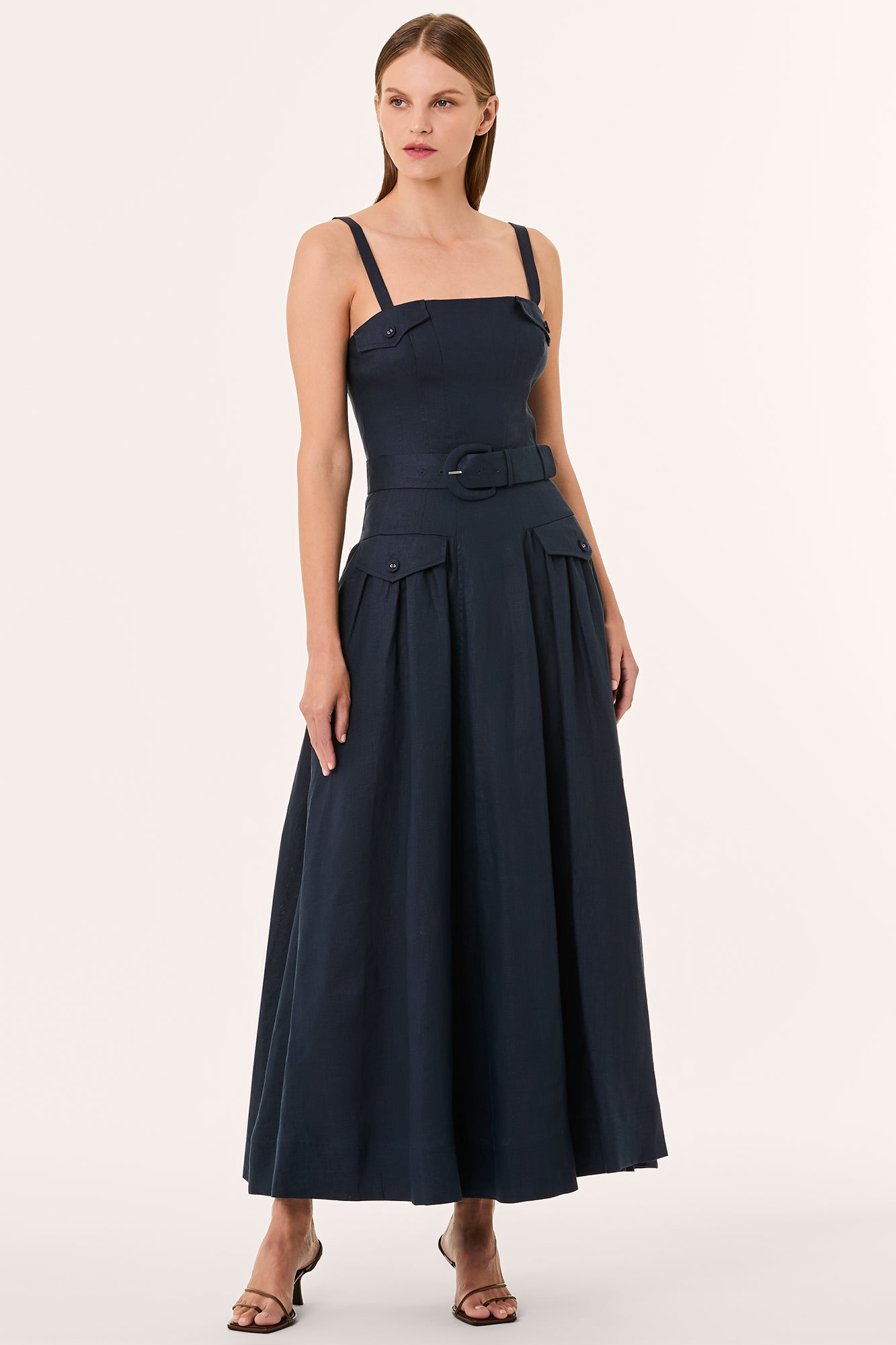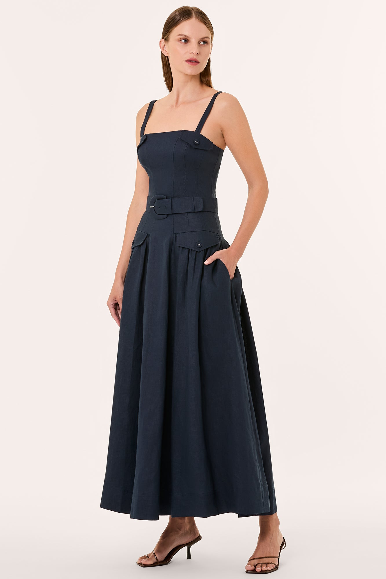 On a US size 4, this style measures 55" from the high shoulder to the hemline