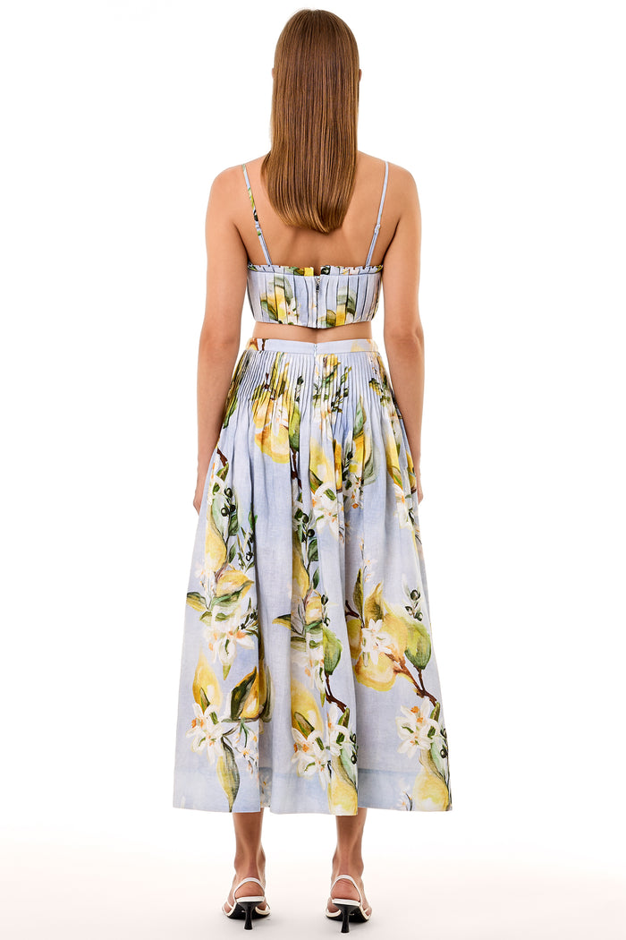Featuring the exclusive 'Anisa Sky Lemon' print, hand drawn and designed by our in-house team