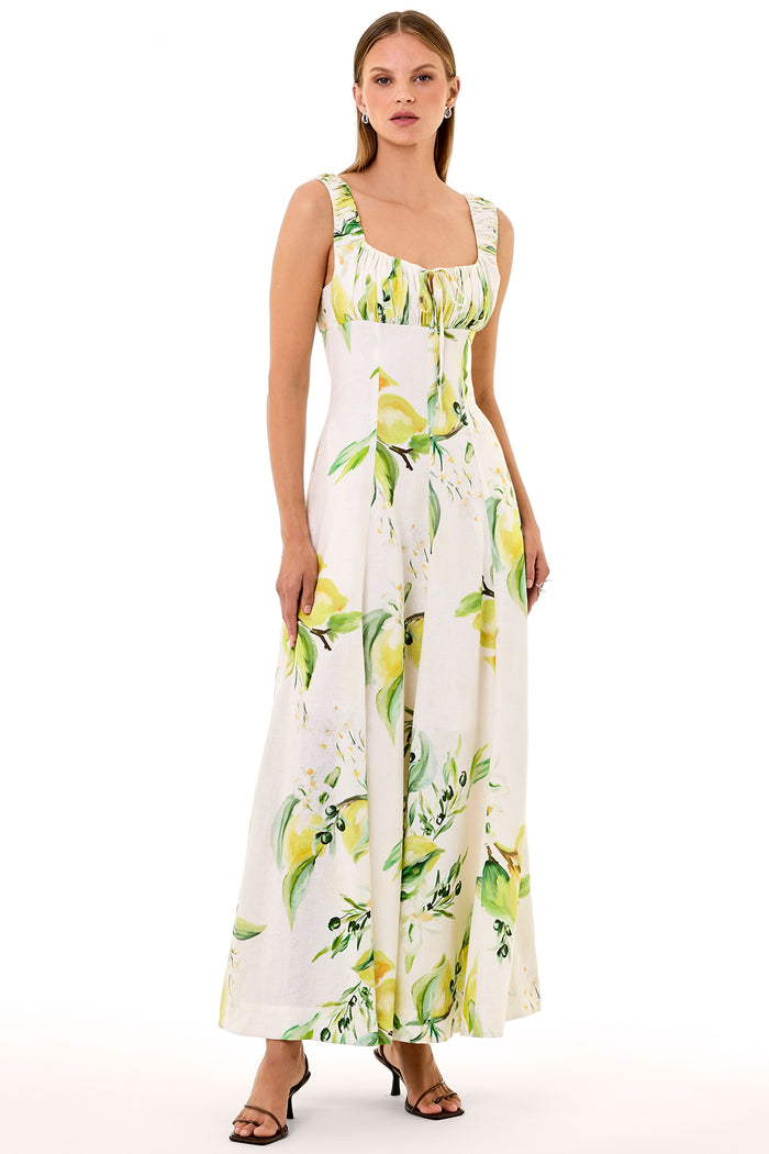 Featuring the exclusive 'Anisa Ivory Lemon' print, hand drawn and designed by our in-house team